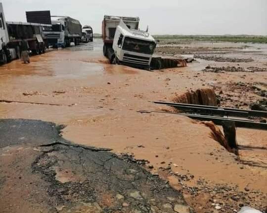 تسببت الأمطار الغزيرة والسيول الجارفة، اليوم الجمعة في قطع الطريق القومي الرابط بين العاصمة السودانية الخرطوم، ومدينة بورتسودان ميناء السودان الرئيسي، مما أدى إلى تكدس وتعطيل عشرات المئات من الحافلات السفرية والشاحنات، مما دعا بعض المسافرين العالقين لاطلاق نداء استغاثة عبر مواقع التواصل الاجتماعي لمساعدتهم.