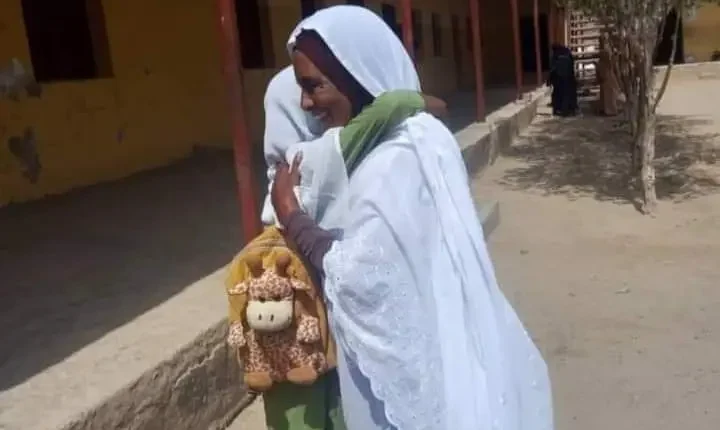 وظهرت التلميذة وهي فرحة تحتضن معلمتها الأستاذة نعمات ككراب، بمدرسة المعلم الخاصة بمدينة بورتسودان، في مشهد مؤثر لاقى تفاعلاً في أوساط رواد التواصل الاجتماعي